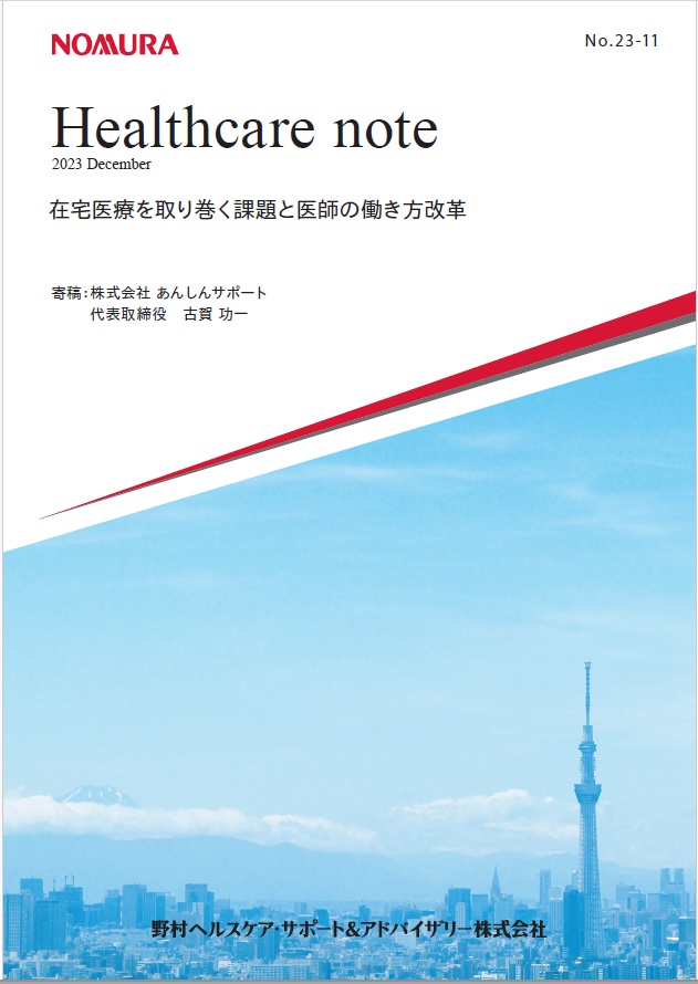 NEWS お知らせ 月を選択 2024年12月 (1) 2024年8月 (1) 2023年12月 (2) 2023年3月 (1) 2022年10月 (1) 2022年4月 (1) 2022年2月 (2) 2022年1月 (1) 2021年12月 (1) 2021年7月 (1) 2021年6月 (1) 2021年4月 (1) 一覧へ戻る 代表取締役古賀の寄稿文が『ヘルスケアノート』に掲載されました。 202312/27 弊社代表取締役:古賀が執筆した『在宅医療を取り巻く課題と医師の働き方改革』が野村ヘルスケア・サポート&アドバイザリー株式会社が発行する「ヘルスケアノート」に掲載されましたのでご覧ください。 詳細はこちら
